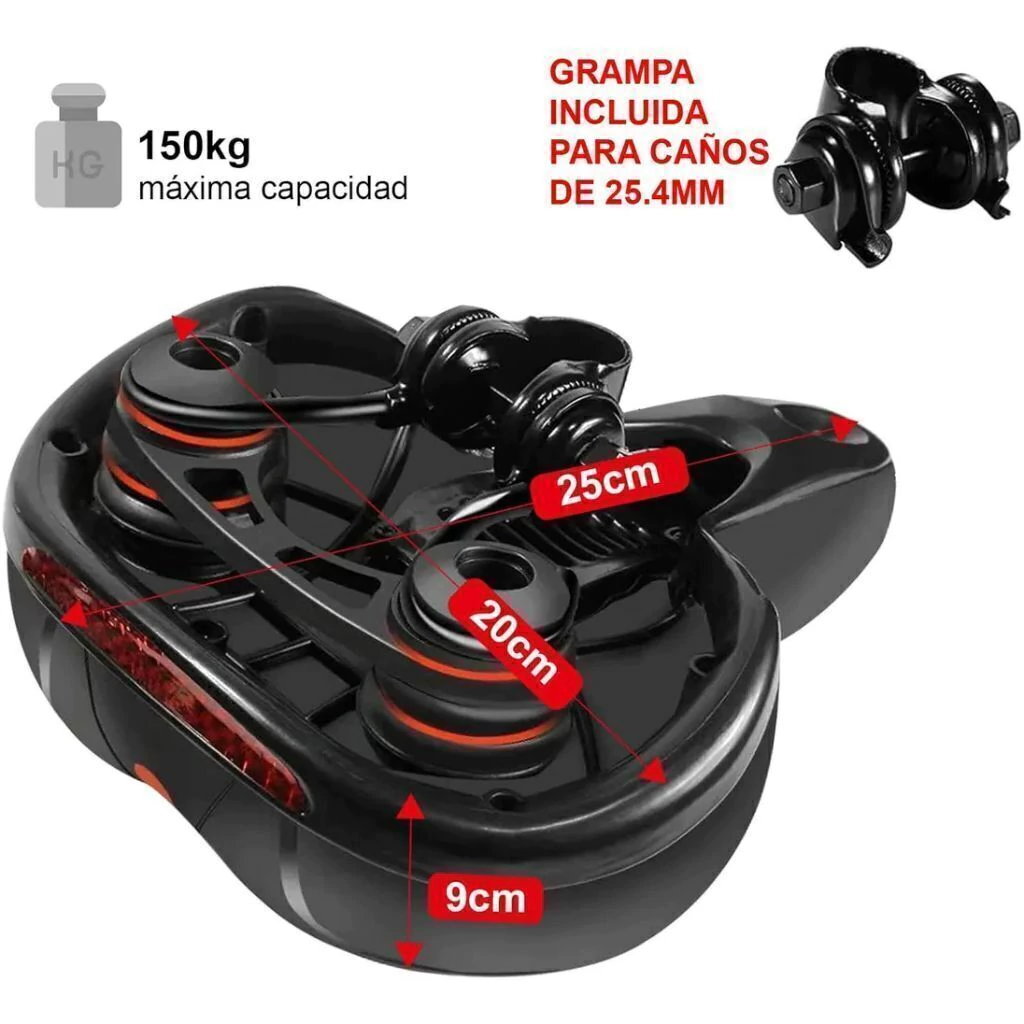 Con dimensiones de 22,00 cm x 25,00 cm x 12,00 cm, se adapta perfectamente a distintos tipos de bicicletas y ciclistas, brindando un soporte adecuado sin importar el rodado. Su peso ligero de solo 669 gramos facilita la instalación y no afecta el rendimiento durante el recorrido.