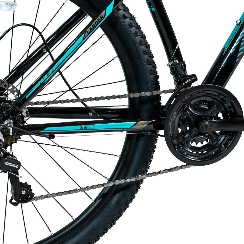 Su sistema incluye: - Cambio Shimano Tz31 de 7 velocidades y descarrilador Shimano Tz500 de 3 velocidades para una experiencia de cambio suave y precisa. - Manijas Shimano Tx30 3x7 velocidades y palanca triple de acero que aseguran durabilidad y control. - Frenos a disco mecánicos que brindan una frenada segura y eficiente en cualquier condición. - Componentes robustos como mazas con rulemanes, cubiertas y asiento MTB para máxima comodidad y resistencia.