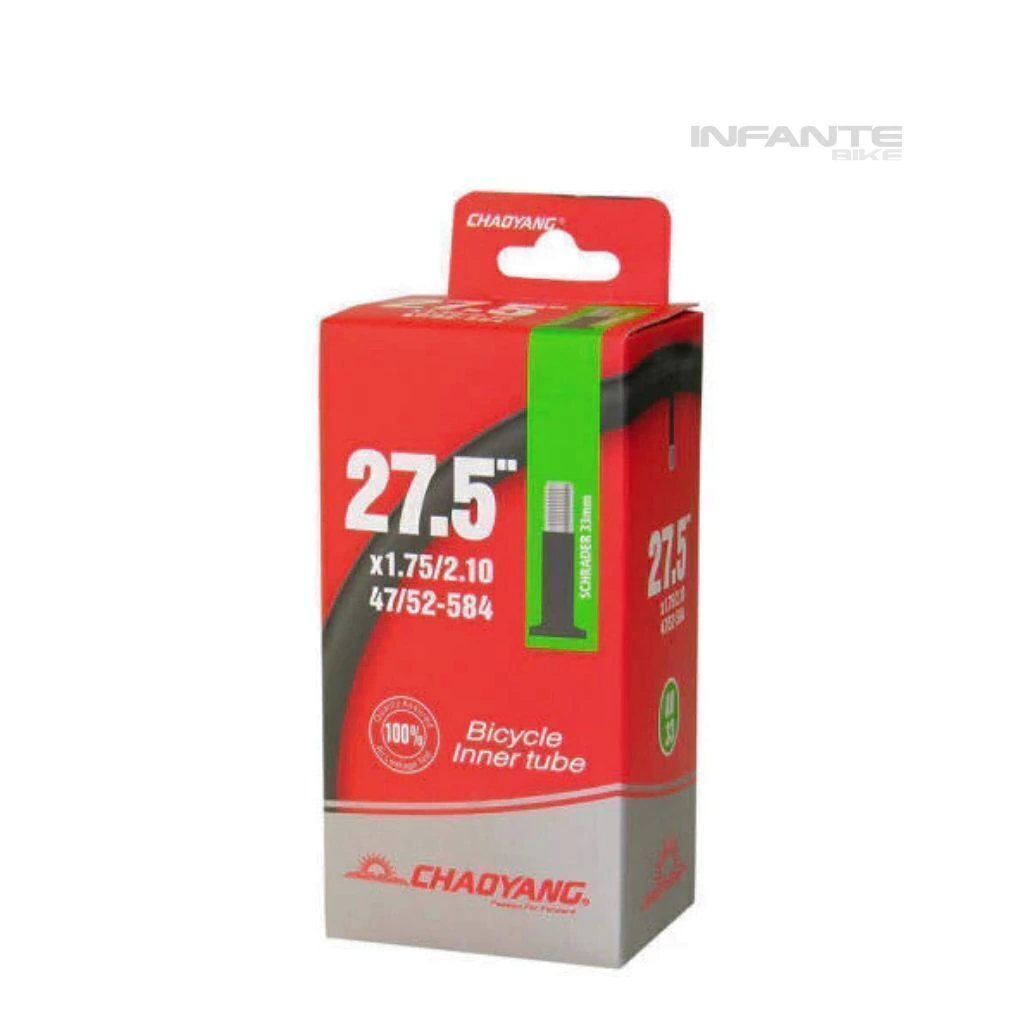 La Cámara de Aire para Bicicletas Chaoyang 27.5x2.10/2.25 es una opción confiable para mantener tus ruedas en óptimas condiciones. Diseñada con válvula Schader de 48 mm, facilita el inflado y garantiza un sellado eficiente. Ideal para bicicletas con neumáticos de medidas 27.5 pulgadas y ancho entre 2.10 y 2.25, ofrece durabilidad y resistencia para tus recorridos diarios o aventuras off-road.